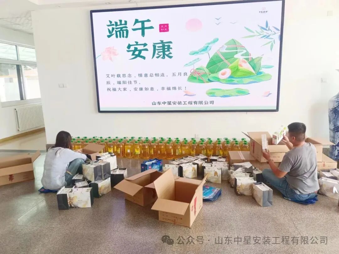 “一(yī)年(nián)一(yī)端午,一(yī)歲一(yī)安康”,這(zhè)不(bù)僅是(shì)對(duì)時(shí)間(jiān)的(de)感慨,更是(shì)對(duì)全體(tǐ)中星家(jiā)人(rén)一(yī)朝一(yī)夕✔在公司付出辛勤勞動的(de)肯定,公司的(de)發展離(lí)不(bù)開(kāi)每一(yī)位家(jiā)人(ré☆n)的(de)努力與付出。因此,在這(zhè)個(gè)特殊的(de)時(shí)刻,公司希望能(néng)夠通(tōng)過這(zhè)份端午禮品,傳遞出對(duì)大(dà)家(j£iā)的(de)關懷與厚愛(ài)。6月(yuè)7日(rì)下(xià)午,濱州市豁達工程安裝有限公司為(wèi)全體(tǐ)員(yuán)工(gōng)準備了(le)端午暖心福利,©提前送上(shàng)節日(rì)祝福,一(yī)盒盒飽含祝福的(de)端午禮品,承載了(le)公司對(duì)中星家(j•iā)人(rén)滿滿的(de)關懷,滿滿的(de)厚愛(ài)!