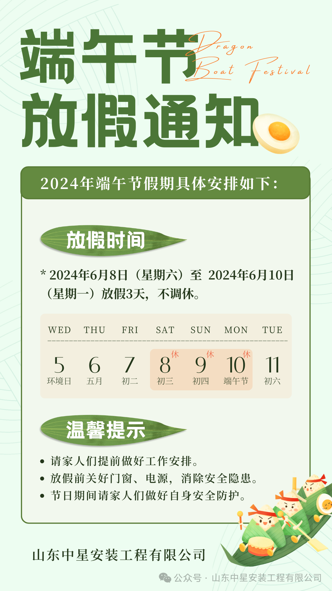 端午節放(fàng)假時(shí)間(jiān):6月(yuè)8日(rì)至6☆月(yuè)10日(rì)放(fàng)假。6月(yuè)11日(rì)上(shàng)班。