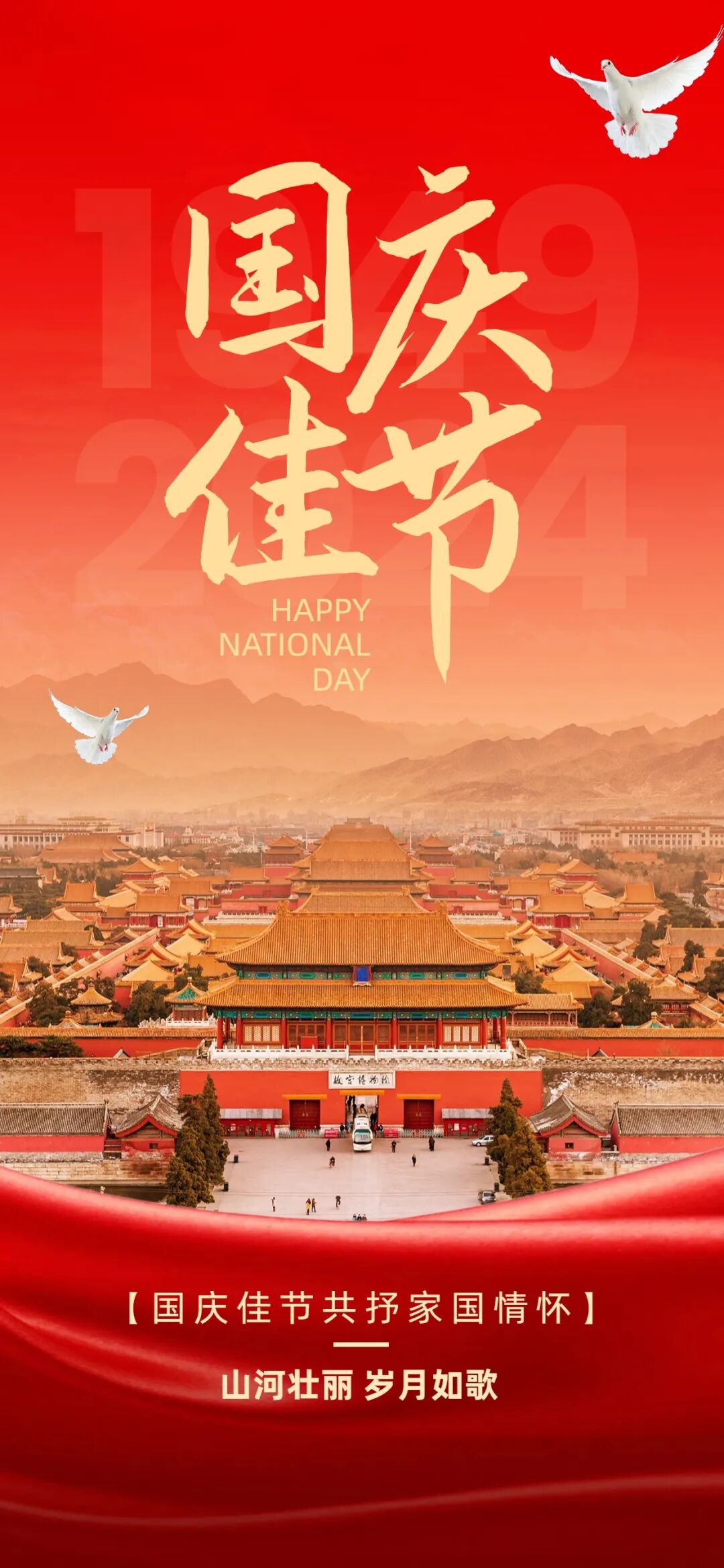 金(jīn)秋時(shí)節,晨曦初綻,鮮豔的(de)五星紅(hóng)旗在晨風(fēng)中獵獵作(zuò)響,似燃燒的(de)火 (huǒ)焰點燃激情;蒼穹浩渺,一(yī)輪明(míng)月(yuè)皎皎生(shēng)輝,如(rú)溫潤的(de)美(měi)玉播撒清光(guāng)。↕當國(guó)慶與中秋喜相(xiàng)逢,舉國(guó)上(shàng)下(xià)沉浸在一(yī)片歡樂(yuè)祥和(hé)之中,濱州市豁達工程安裝有限公司亦滿懷豪情,∑以赤誠之心向各界緻以最誠摯的(de)祝福與敬意,邀各方同仁攜手共進,踏上(shàng)偉大(dà)時(shí)代的(de)壯闊征程,共鑄 輝煌偉業(yè)!