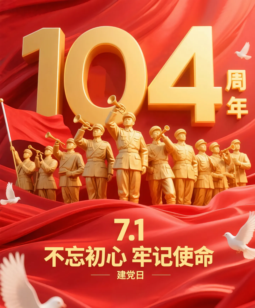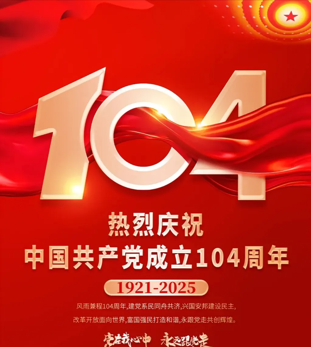 2025年(nián)7月(yuè)1日(rì),中國(guó)共産黨迎來(lá₽i)建黨104周年(nián),讓我們熱(rè)烈慶祝黨的(de)104歲生(shēng)日(rì),讓我們以黨徽、黨旗、黨章(zhāng)為(wèi)指引,不(bù)忘初心,牢記使命 ,為(wèi)實現(xiàn)中華民(mín)族的(de)偉大(dà)複興而努力奮鬥。