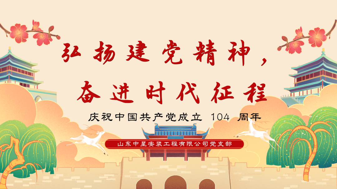 濱州市豁達工程安裝有限公司向黨的(de)104歲生(shēng)日(rì)獻禮!在這(zhè)充滿希望的(de)七月(yuè),向黨緻敬,永遠(yuǎn)跟黨走,共創輝煌未 來(lái)!