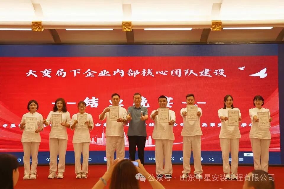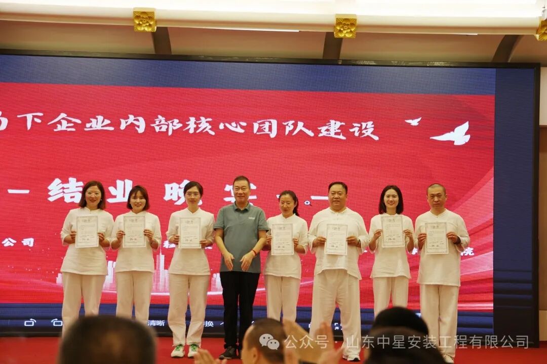 在晚宴中,蔡教授親自(zì)為(wèi)全程參加完三階培訓的(de)學員(yuán)們頒發了(le)結業(yè)證書'(shū)。每一(yī)張證書(shū)都(dōu)承載著(zhe)大(dà)家(jiā)的(de)努力與汗水(shuǐΩ),也(yě)象征著(zhe)我們在團隊建設道(dào)路(lù)上(shàng)邁出的(de)堅實步伐。