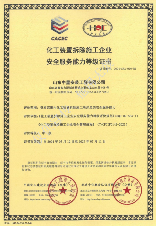 14.國(guó)家(jiā)安全生(shēng)産标準化(huà)證書(shū)