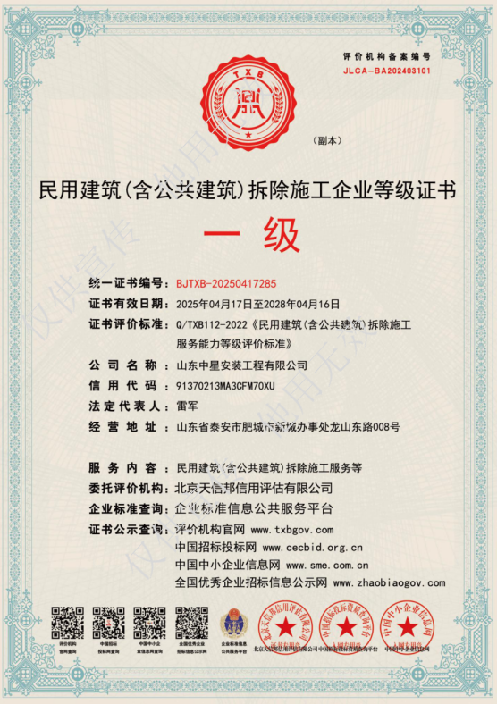 8.民(mín)用(yòng)建築(含公共建築)拆除施工(gōng)企業(yè)等級證書(shū)