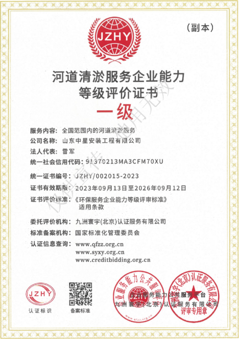 16.河(hé)道(dào)清淤服務企業(yè)能(néng)力等級評價證書(shū)