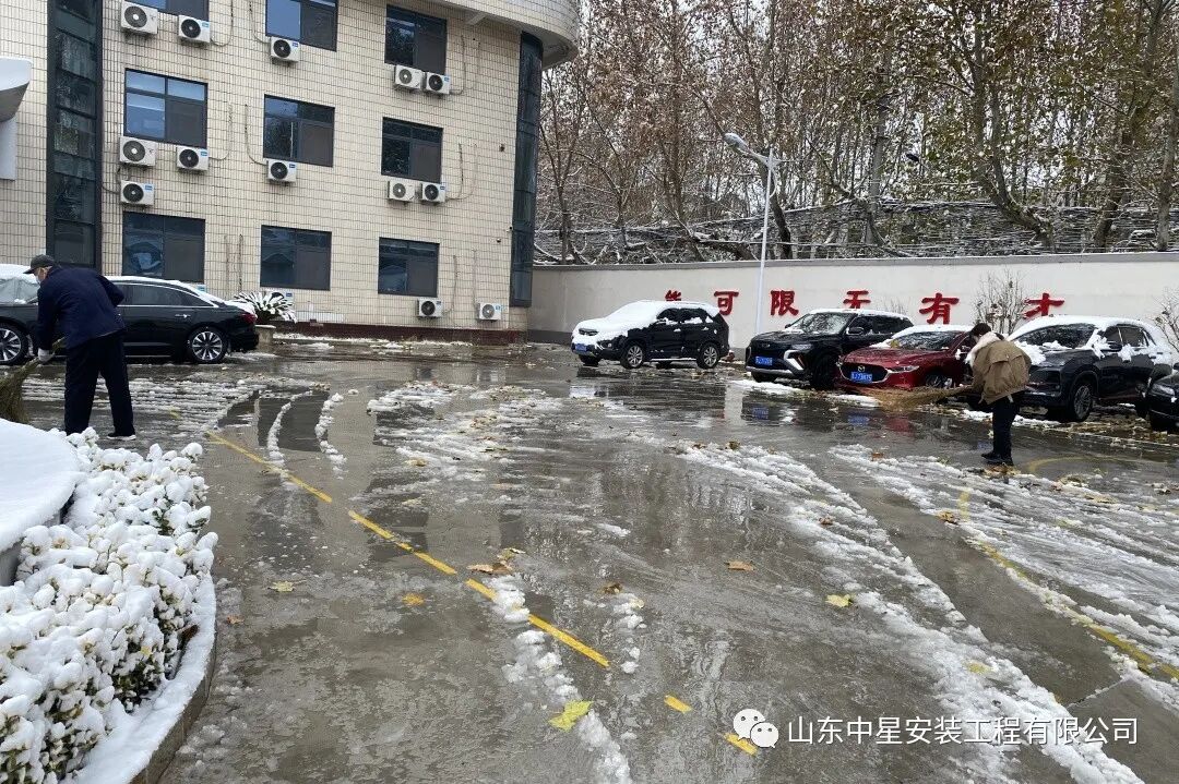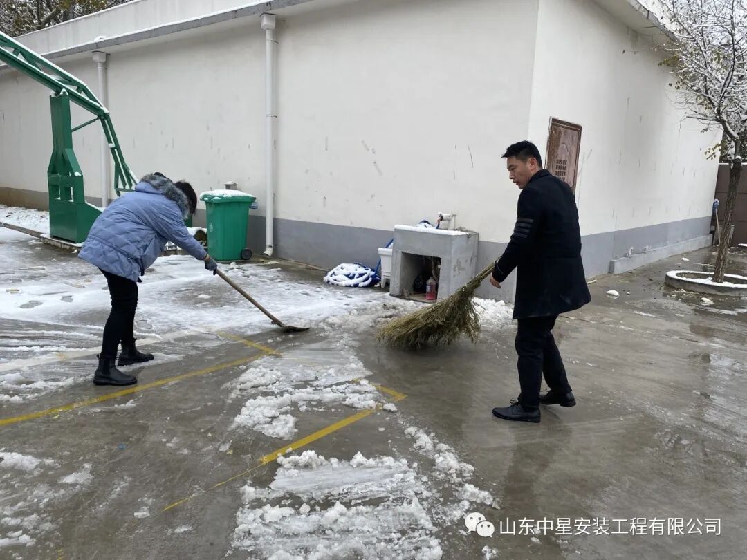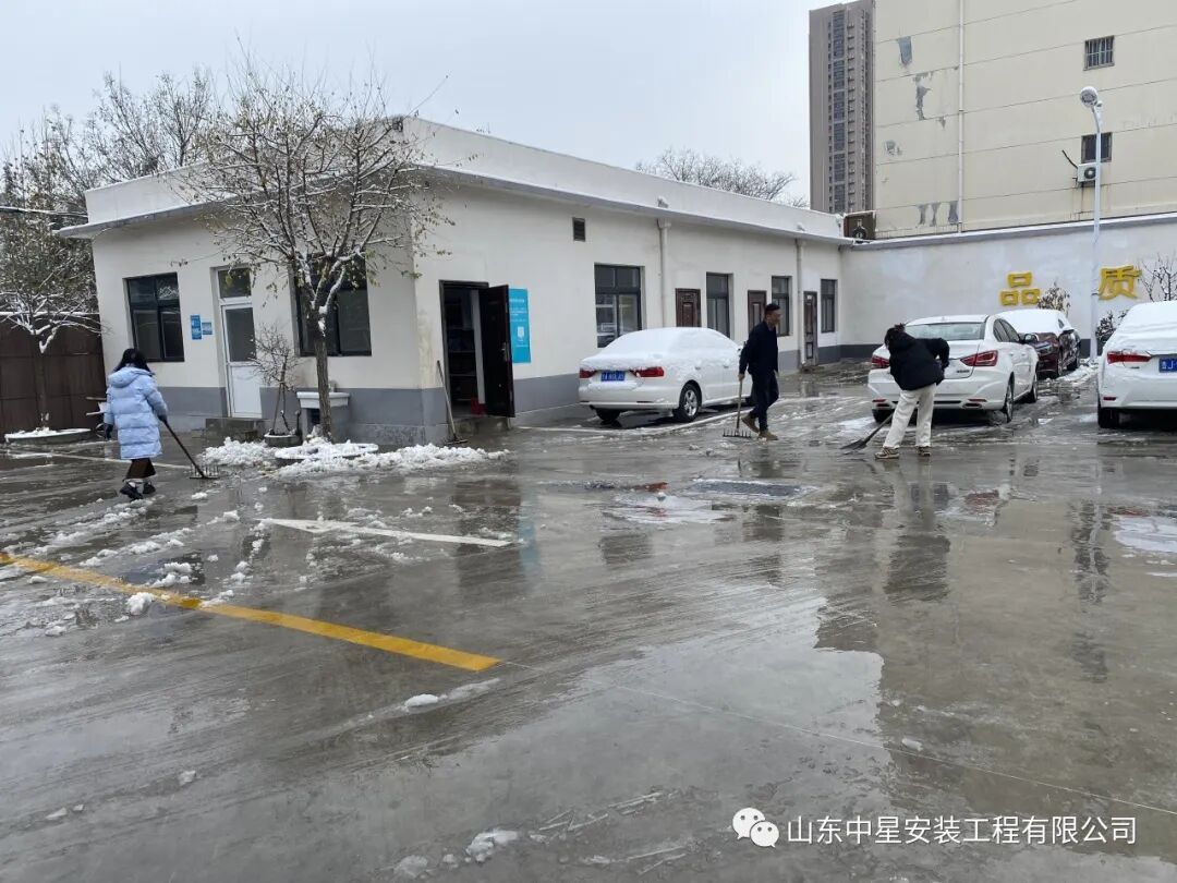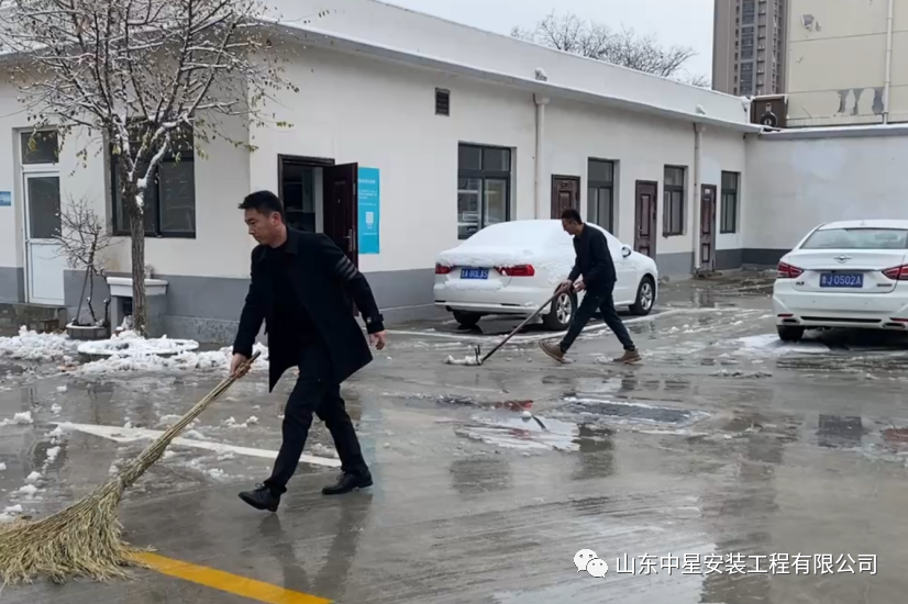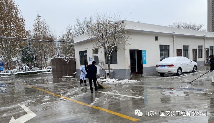 12月(yuè)11日(rì),肥城(chéng)市(shì)氣溫驟降并迎來(lái)了(le)一(yī)場(chǎng)強度較大(dà)的(de)降雪(xuě),雪(xuě)紛紛揚揚下(x☆ià)了(le)一(yī)夜,一(yī)場(chǎng)大(dà)雪(xuě),蒼茫了(le)大(dà)地(dì),預示來(lái)年(nián)的(de)希望。公司被厚厚的×(de)積雪(xuě)覆蓋,銀(yín)裝素裹,分(fēn)外(wài)美(měi)麗(lì)。樓前積著(zhe)一(yī)層厚厚的(de)雪(xuě),如(rú)果清理(lǐ)不(bù)及時(sδhí),就(jiù)會(huì)融化(huà)成冰,行(xíng)人(rén)路(lù)過極易摔倒、摔傷。為γ(wèi)保障員(yuán)工(gōng)安全,方便來(lái)訪客戶出行(xíng),濱州市豁達工程→安裝有限公司積極組織員(yuán)工(gōng)開(kāi)展掃雪(xuě)除冰活動,全力維護客戶和(hé)員(yuán)工(gōng)的(de)出行(xíng)安全。