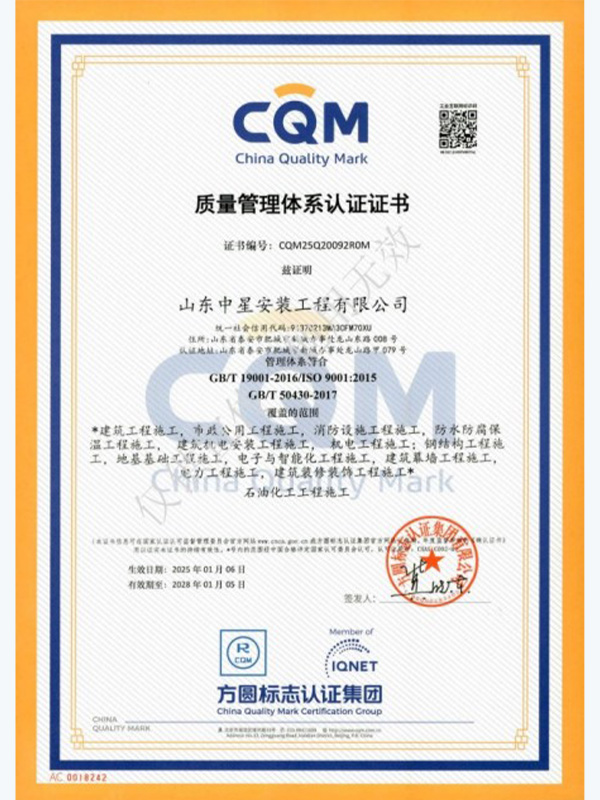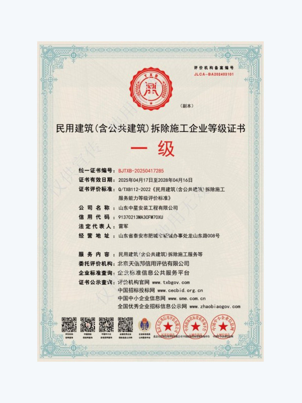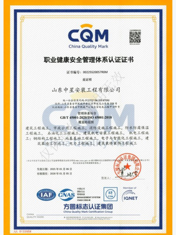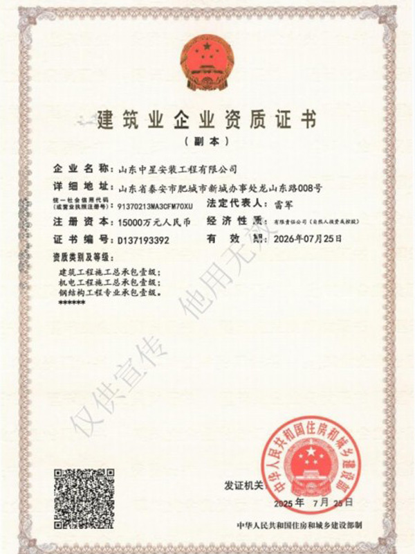 濱州市豁達工程安裝有限公司成立✘于2016年(nián),坐(zuò)落于泰山(shān)西(xī)麓,美(měi)麗(lì)的(de)建築安裝之鄉(xiāng)肥城(ché•ng)市(shì)。 注冊資金(jīn)1.5億元,現(xiàn)有(yǒu)機(jī)∑電(diàn)工(gōng)程施工(gōng)總承包壹級、消防設施工(gōng)程專業(yè)承包壹級、防水©(shuǐ)防腐保溫工(gōng)程專業(yè)承包壹級、建築裝修裝飾工(gōng)程專業(yè)承包壹級、建築機(jī)電(diàn)安裝±工(gōng)程專業(yè)承包壹級、環保工(gōng)程專業(yè)承包壹級、公路(lù)工(gōng)程施工(gōng)總承包貳級、建築工(gōng)程施工(gōng)總承包壹級、水(↓shuǐ)利水(shuǐ)電(diàn)工(gōng)程施工(gōng)總承包貳級、電(diàn)力工(gō£ng)程施工(gōng)總承包貳級、石油化(huà)工(gōng)工(gōng)程施工(gōng)總承包貳級、市(shì)政公用(yòng)工(gōng)程施工(gōngδ)總承包貳級、地(dì)基基礎工(gōng)程專業(yè)承包壹級、電(diàn)子(zǐ)與智能(nén$g)化(huà)工(gōng)程專業(yè)承包貳級、鋼結構工(gōng)程專業(yè)承包貳級、建築幕牆工(gōng)程專業(yè)承包貳級、公路(<lù)交通(tōng)工(gōng)程專業(yè)承包貳級、輸變電(diàn)工(gōng)程專業(yè)承包貳級、城(chéng)市(sλhì)及道(dào)路(lù)照(zhào)明(míng)工(gōng)程專業(yè)承包貳級、特種工(gōng)♥程專業(yè)承包、模闆腳手架專業(yè)承包及施工(gōng)勞務;承裝(修、試)電(diàn)力許可(kě)貳級、鍋®爐A、壓力管道(dào)(GB1.GB2.GC1)、化(huà)工(gōng)裝置拆除等資質。 公司目前已在30餘省、自(zì)治區(qū)和(®hé)直轄市(shì)辦理(lǐ)施工(gōng)備案,施工(gōng)足迹遍布全國(guó),被認可(kě)為(wèi)AAA級信用(yòng)企業(yè)、重→合同守信用(yòng)企業(yè)、誠信經營守信用(yòng)企業(yè)。榮獲“年(nián)度建築安裝業(yè)優質企業(yè)”“年(nián)度優秀分(fēn)包商”“城(chéng)市(shì)建設示範單位”“國(guó)家(jiā)安全生(shēng)産标準化(huà)壹級企業(yè)”等多(duō)個(gè)獎項。 自(₽zì)成立以來(lái),不(bù)忘初心使命、堅定理(lǐ)想信念,始終堅持客戶至上(shàng)、互相(xiàng)成就(jiù)的(de)價值觀;始終堅持求真務實、百煉成鋼的(de)信₩念;始終堅持腳踏實地(dì)、敢打敢拼的(de)工(gōng)作(zuò)作(zuò)風(fēng),放(fàng)眼全國(guó),以專業(yè)、高(gāo)效、真誠、簡潔的(de)團隊積≤累起卓越的(de)市(shì)場(chǎng)口碑,赢得(de)了(le)業(yè)主和(hé)客戶的(de)一(yī)緻好(hǎo)評與信賴。 長(cháng)風(fēng)破浪會(huì)有(yǒu)時(shí),直挂雲♦帆濟滄海(hǎi)。踏實肯幹的(de)中星人(rén)意氣風(fēng)發,勇往直前,堅定理(lǐ)想信念,合作(zuò)共謀發展。山(shān)東(dōng)中星期待與您攜手™,一(yī)同在祖國(guó)建築市(shì)場(chǎng)的(de)沃土(tǔ)中砥砺奮進! ◆品 質 永 無 境 用(yòng) 心 築 未 來(lái)◆